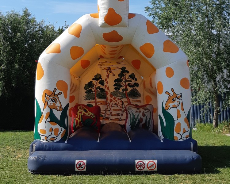 Springkasteel huren voor een feest vol springplezier? Kies voor het giraf-springkasteel van VDS-Rent!